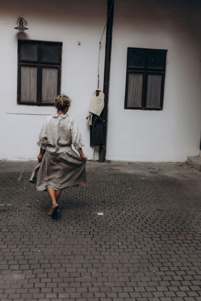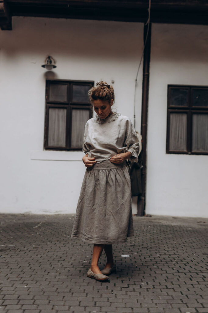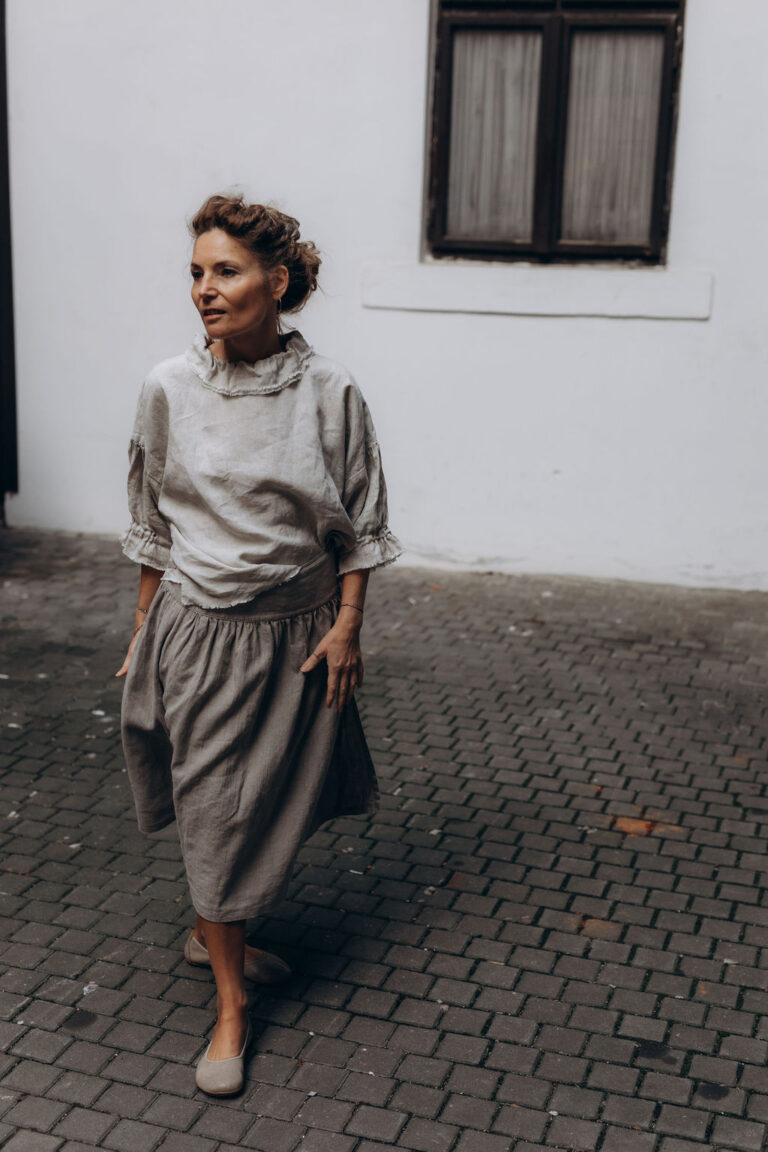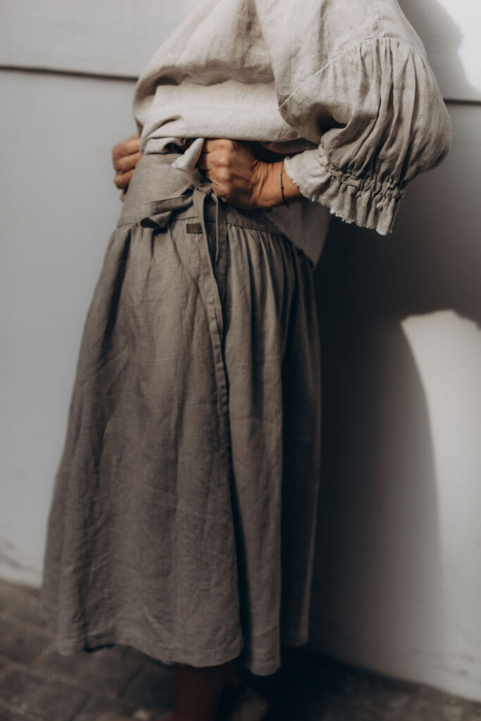 100% lněná zavinovací sukně. Řemeslně zpracovaná. Only one size pro všechny ženské proporce a tvary. Má důmyslný systém vedení a úvazu zvaný hanbok. Sukně, která roste s vámi a vaše proporce ctí. Pro vždycky dobrý pocit. Hravá a krásná. V rozverné délce 70 cm, či, pro ženy vyššího vzrůstu, v délce prodloužené na 80 cm (nutno uvést v objednávce). Ve dvou cenových kategoriích, jež odvíjí se od ceny látky na trhu. Dražší, v barvě naturální a dostupnější, ze lnu barveného (vybírejte len nižší gramáže 185 g/m2, v záložce Barevnice v záhlaví e-shopu a svou volbu uveďte v poznámce objednávky). Rodí se v šicí dílně na jižní Moravě. Sukně je na objednávku, s dodáním cca do 2-3 týdnů od uhrazení objednávky.