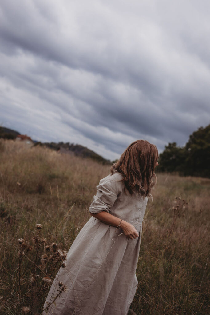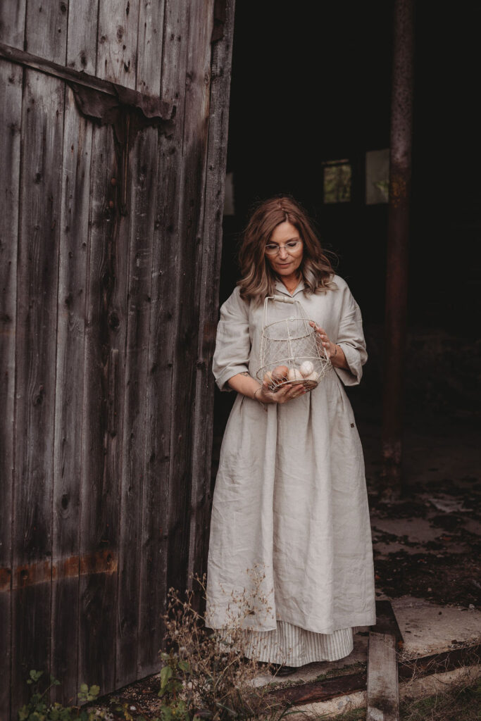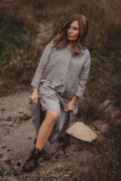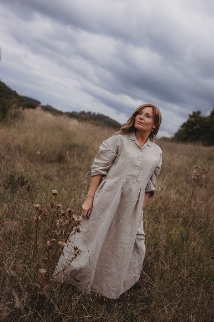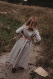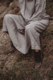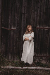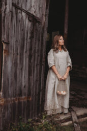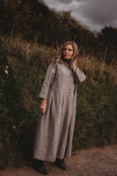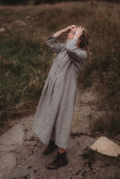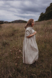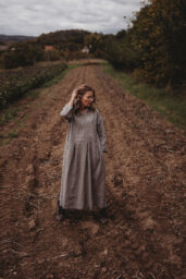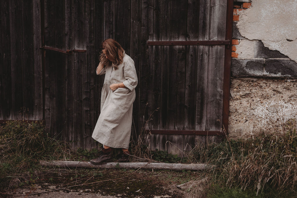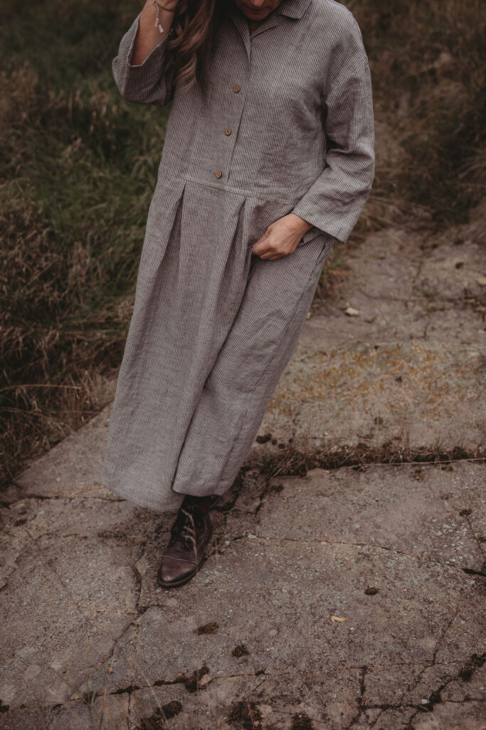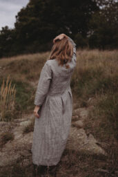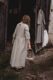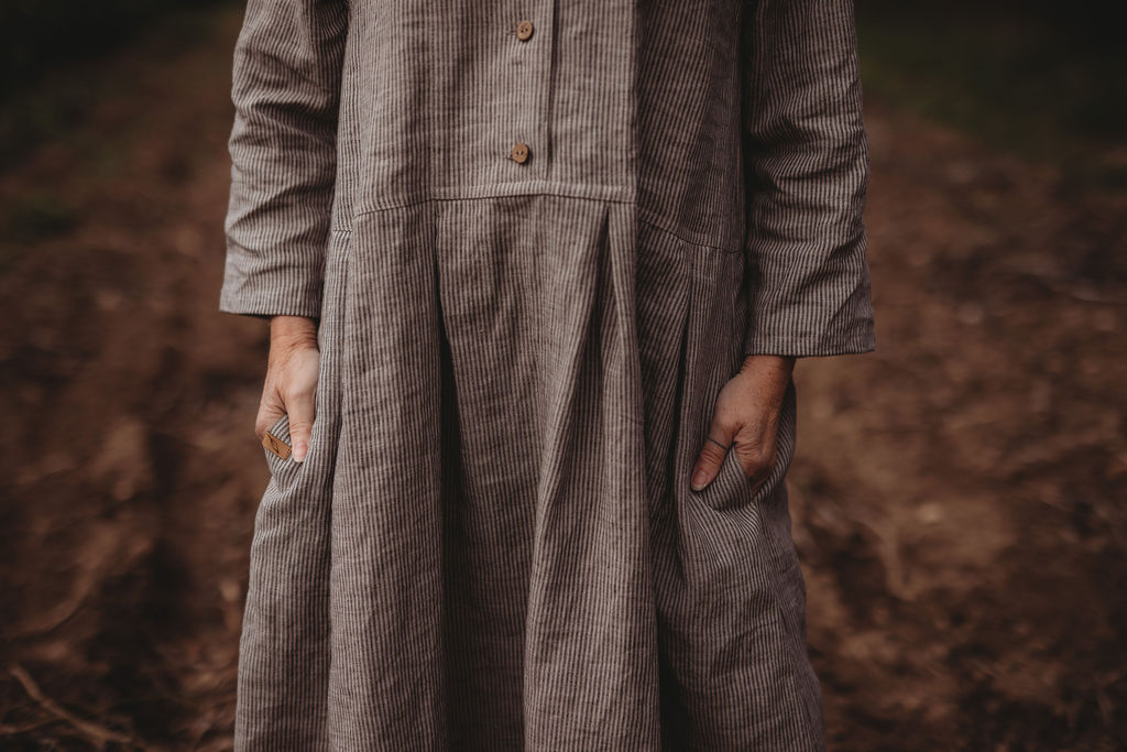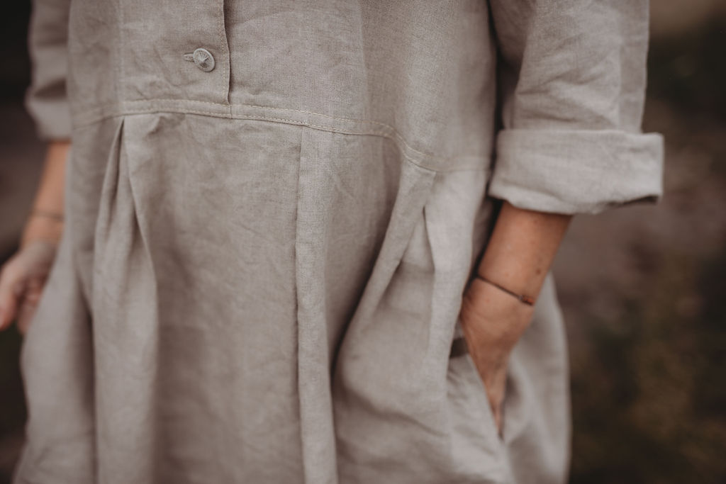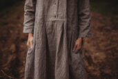 Lněné komfortní šaty. S průstřihem v pase, skládanou širokou sukní, kapsami v bocích. Krátká elegantní fazónka a košilové rozpínání na předním díle. Ve variantě přírodní či v proužku režná-indigo. Skvělé k vrstvení a kombinaci se spodničkou či prošívaným kabátkem Berenika. Pokud vám barevnost nesedí, zvolte si dle barevnice jinou a uveďte v poznámce objednávky. Více info níže.