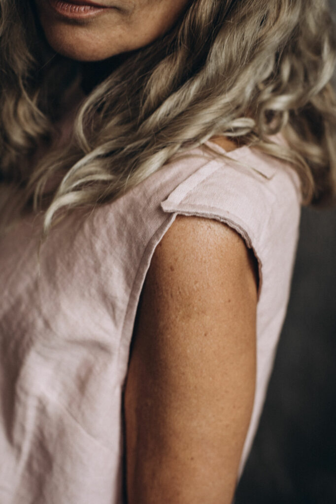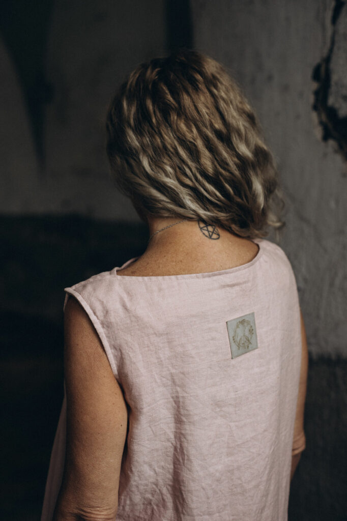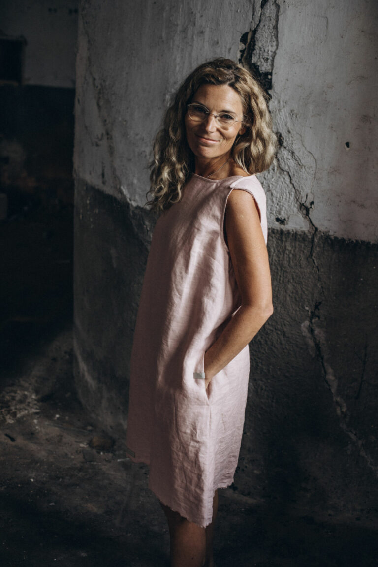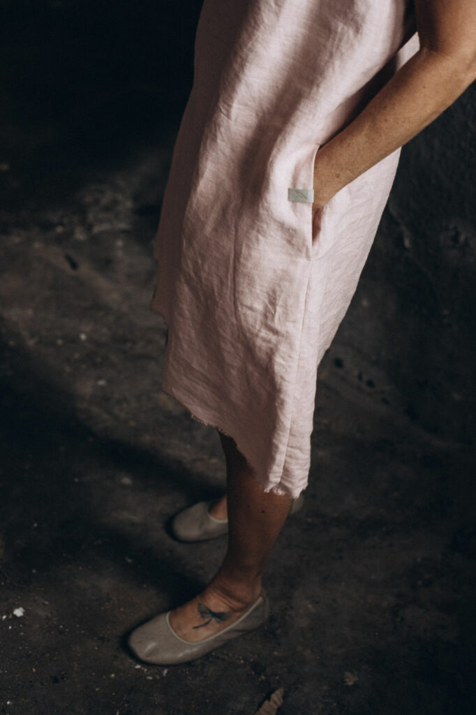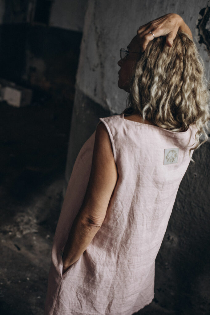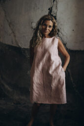 Šatky lněné, minimalistické a krásné, rukávů a dole lemu prosté, áčkového střihu. S rafinovaným detailem na rameni a kapsami na čtyřlístky. Elegantní, leč svůdné. Ženské, ač lehce koketní bych řekla. Na pařížský boulevard, do šantánu i do na malém městě kina vhodné. Slušet budou všem, barev možno přehršel. Tyhle jsou starorůžové. Dodání do 2-3 týdnů od uhrazení objednávky.