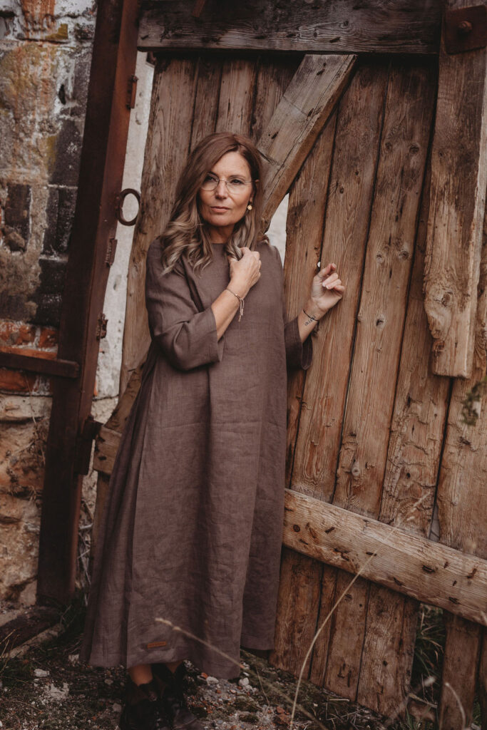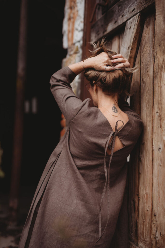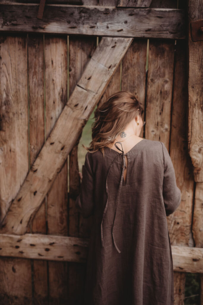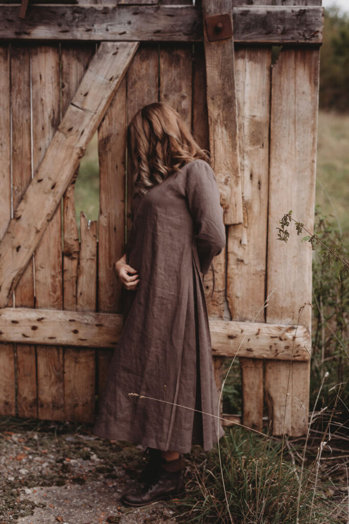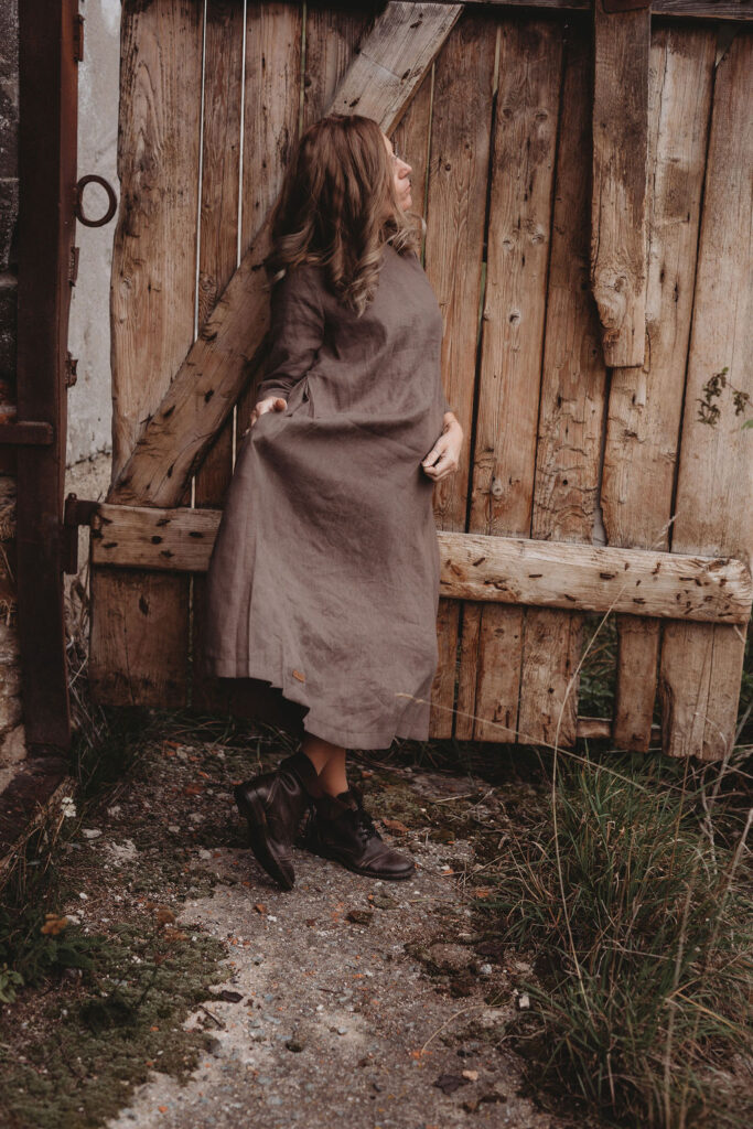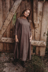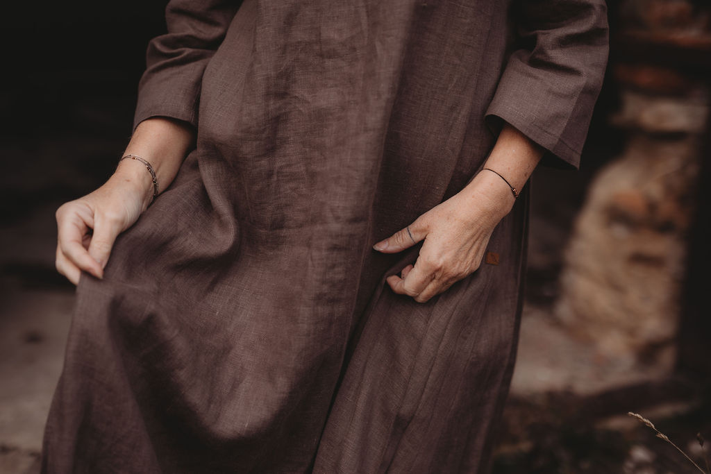 Lněné nadčasové, velmi ženské a půvabné šaty. V bocích kapsy a trojitý protisklad, jenž vykouzlí elegantní siluetu a přidá na pohodlí. Záševky k přednímu výstřihu dají hrudi tvar. Zadní výstřih jemně do V, s rozparkem a svůdným úvazem. V barvě na přání dle barevnice. Originál v šedohnědé. Dodání do 3-4 týdnů od uhrazené objednávky. Více infa níže.