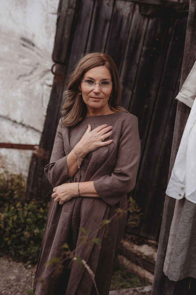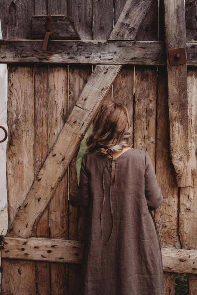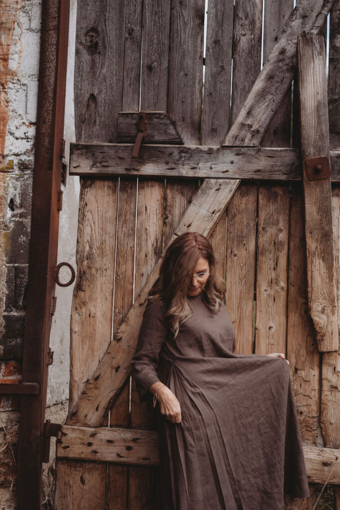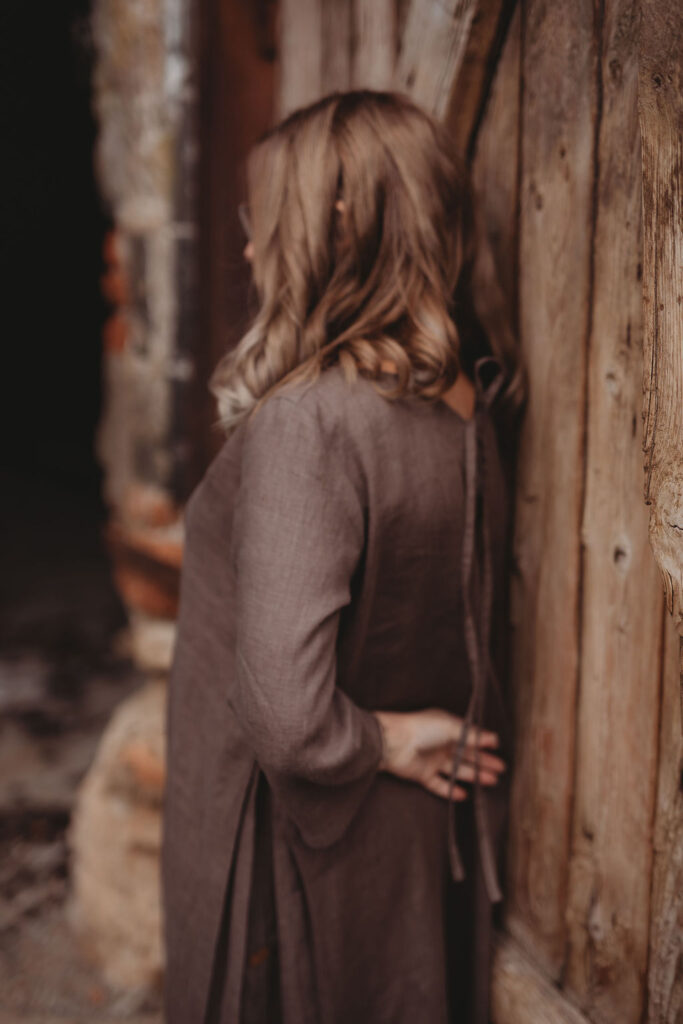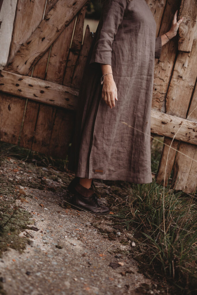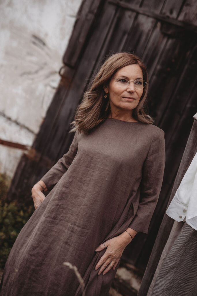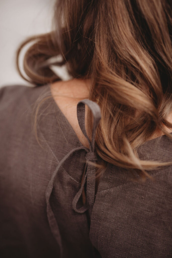 Lněné nadčasové, velmi ženské a půvabné šaty. V bocích kapsy a trojitý protisklad, jenž vykouzlí elegantní siluetu a přidá na pohodlí. Záševky k přednímu výstřihu dají hrudi tvar. Zadní výstřih jemně do V, s rozparkem a svůdným úvazem. V barvě na přání dle barevnice. Originál v šedohnědé. Dodání do 3-4 týdnů od uhrazené objednávky. Více infa níže.