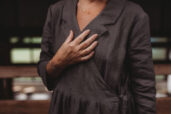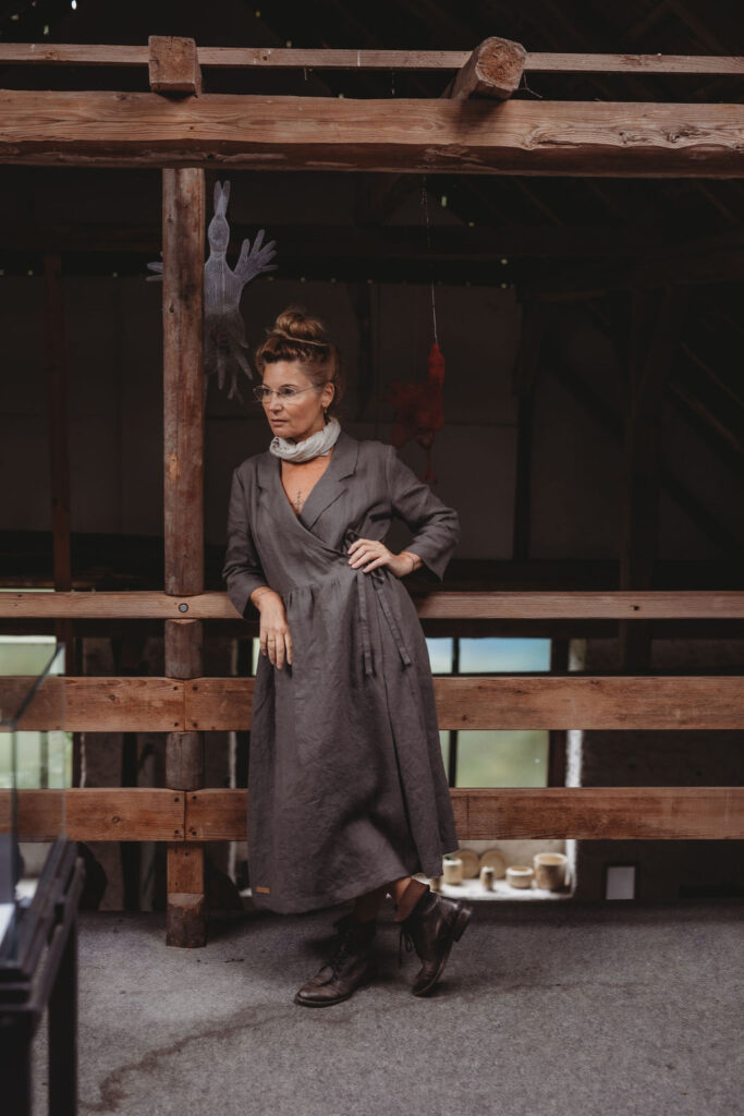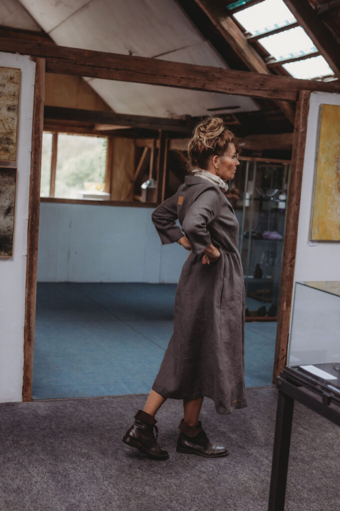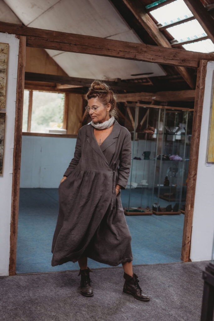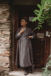 Lněné zavinovací šaty s fazónou, ležérního střihu. Kapsy v bocích. Velmi vhodné k vrstvení. Základní barva grafitová šeď, na přání námořnická modrá (uveďte v poznámce objednávky). Len gramáže 185g/m2. Modelka výška 163 cm, vel. M. Doprava zdarma. Dodání v rámci předprodejní akce do 3-5 týdnů od přijetí platby.